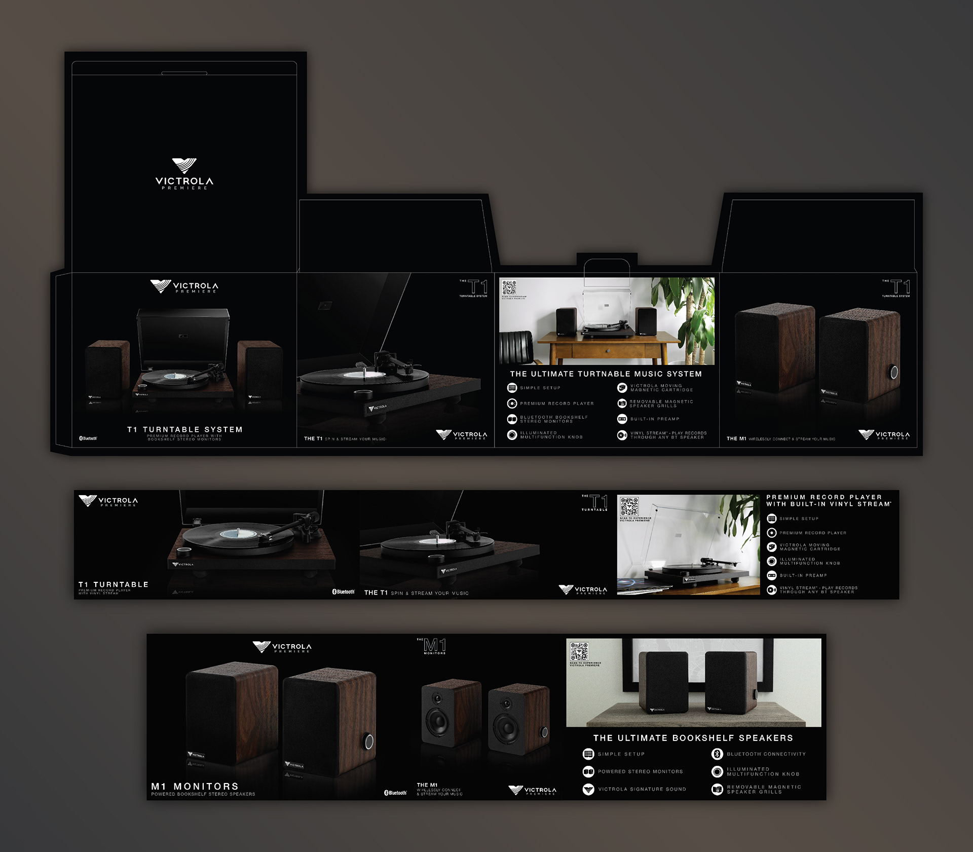 Package design for the Victrola Premiere product line & ME Speakers - 2021 – 2022