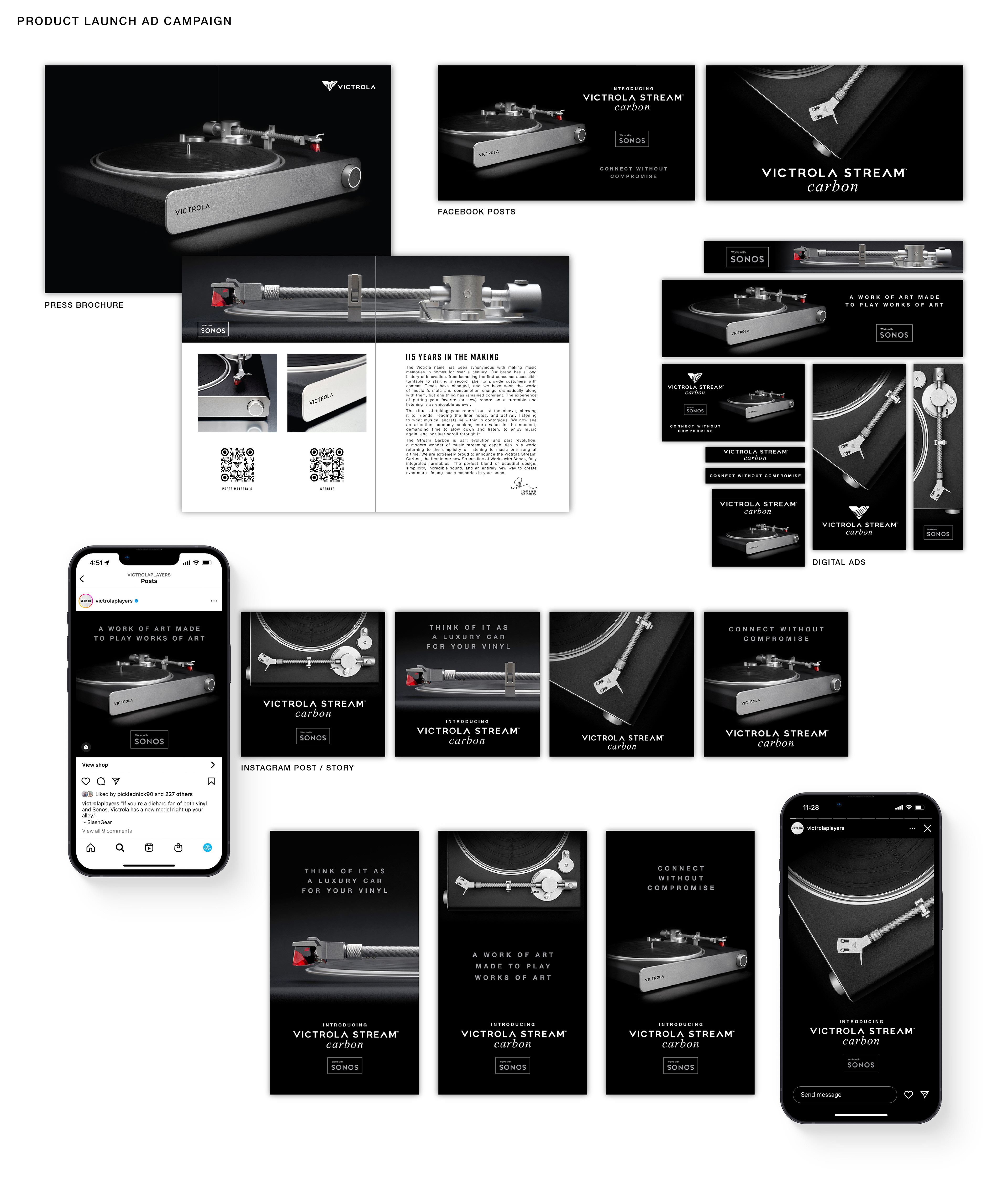 Branding, Package design & Marketing Material for the Victrola Stream Carbon™ - 2022 All imagery & products are owned and sold by Victrola / Innovative Technology Electronics, LLC