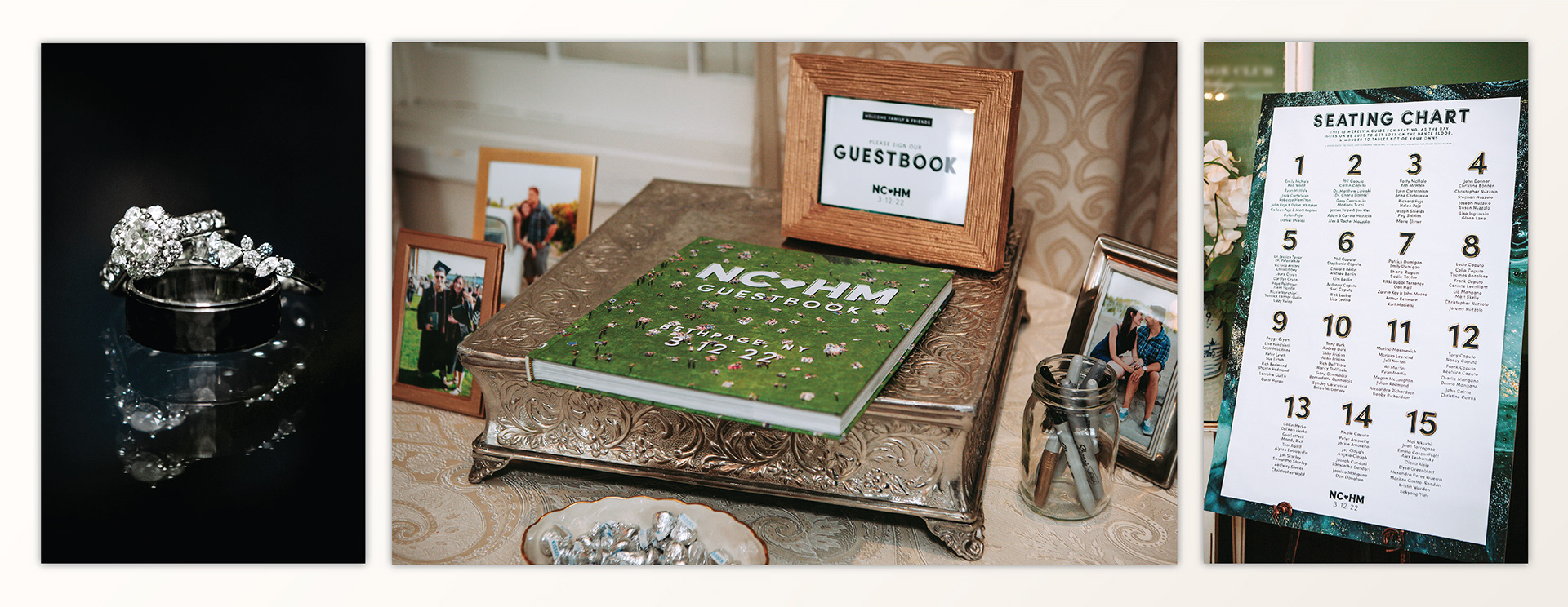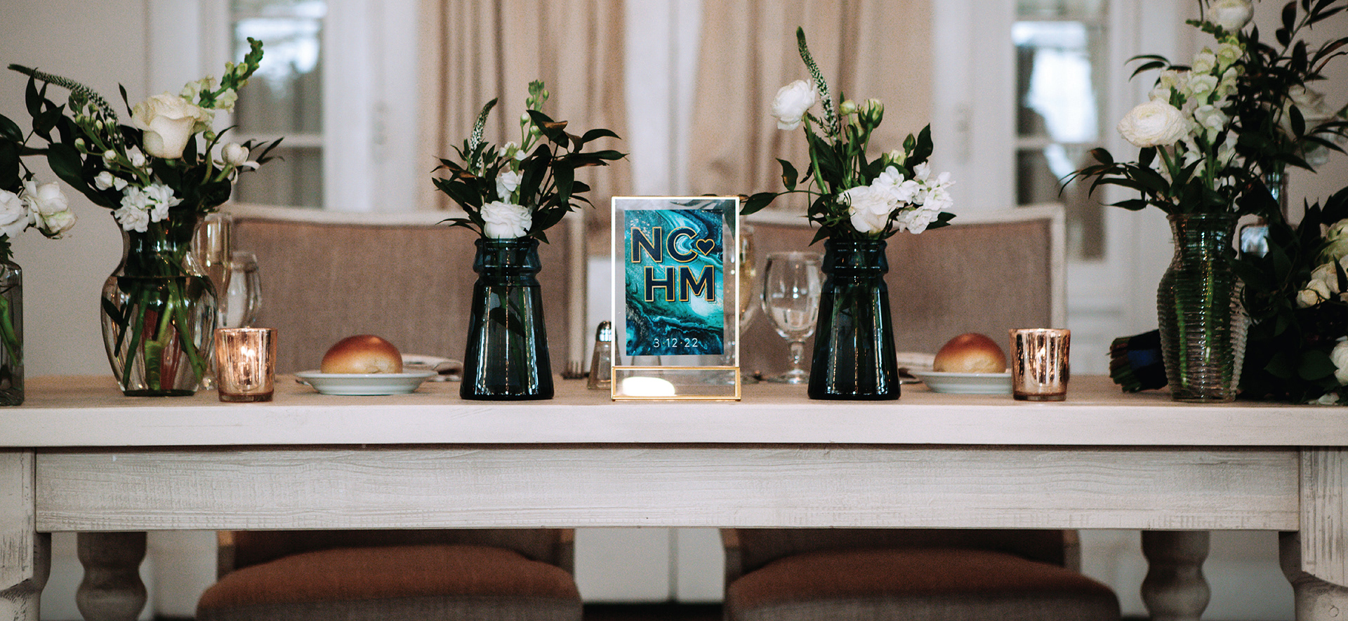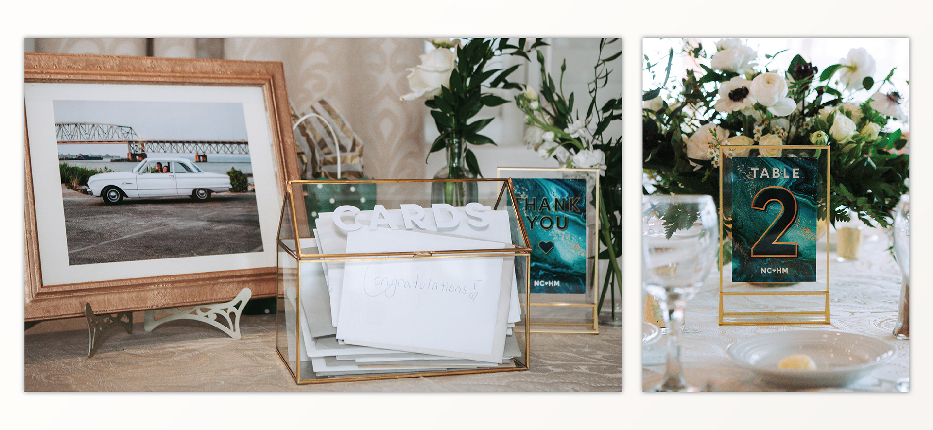 Wedding branding for my personal wedding on 3/12/2022. Content includes: logo design, invitation design, save the date & thank you card design, seating chart layout, ceremony program design, table card frames, and other misc. signage.